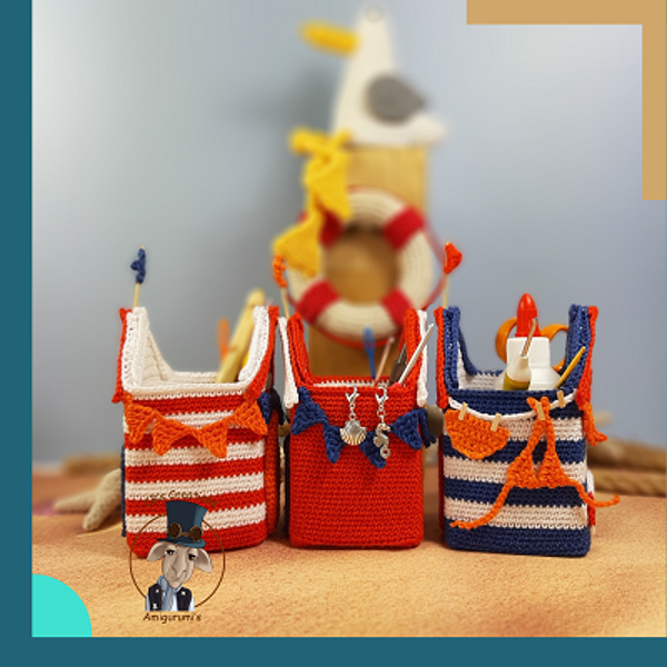 De Strandhuisjes worden gehaakt in de kleuren Rood/Wit/Blauw, Oranje is voor de extra details en de krab!