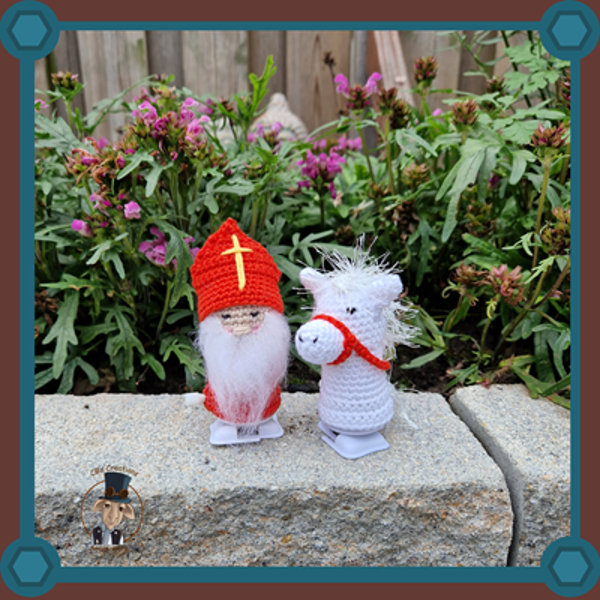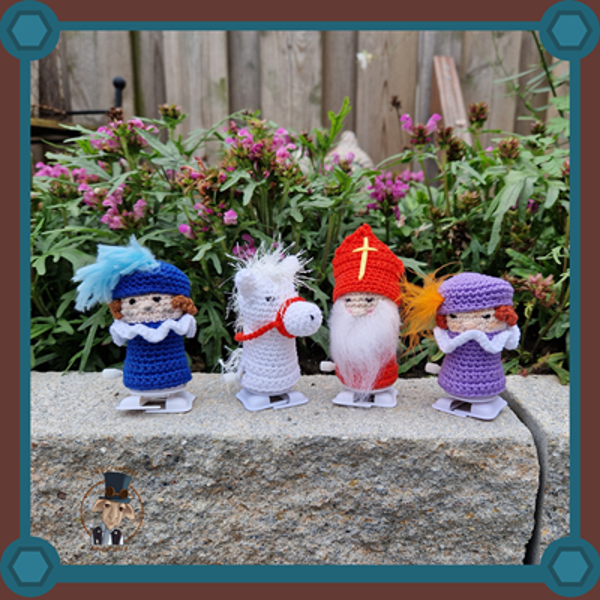 Amigurumi haakpatroon van Sinterklaas, Pietjes en het paard van Sinterklaas met opwindbare voetjes