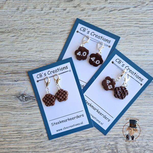 Nooit meer twijfelen over met welke haaknaald je aan het haken bent! Deze chocolade wafel-steekmarkeerders markeren niet alleen je toer, maar tonen ook de naalddikte. Perfect voor elke haakster! Per set van 2, handgemaakt en uniek.