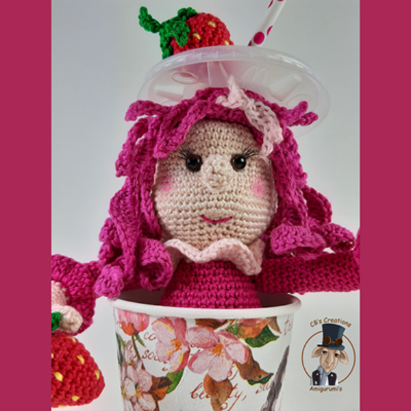 Amigurumi Haakpatroon milkshake dame met aardbei