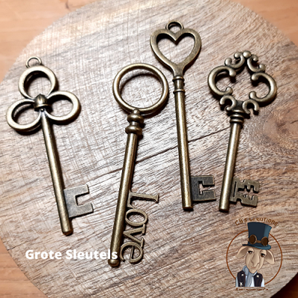 Er zijn 3 verschillende grootte van sleutels. De kleinste zijn 3-4 cm groot. De middelgrote sleutels 4.5-6 cm groot, de grootste sleutels zijn 6.5-7 cm.